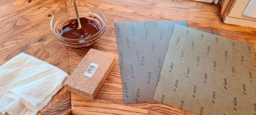 1. Se till att underlaget är ordentligt inoljat, överflöd torkas bort och får torka. Kallpressad rå linolja är att föredra.